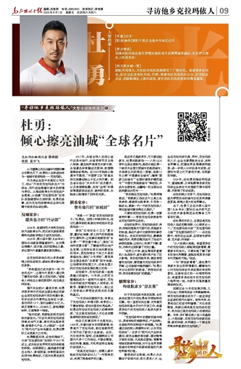 对于克拉玛依未来的发展,长年奔走在国内外的杜勇有非常独特的见解。他一直密切关注着、支持着克拉玛依的高水平对外开放工作,希望更多在外的克拉玛依人能多为家乡作贡献。