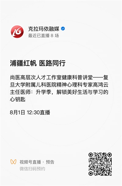 本报讯(克拉玛依融媒记者 张冰 通讯员 房磊)如何帮助孩子顺利度过升学关键期?怎样科学防治眼部疾病?8月1日起,尚医高层次人才工作室将推出“浦疆红帆 医路同行”系列健康科普直播,上海市三甲医院专家将在线为市民答疑解惑,分享专业实用的健康知识。