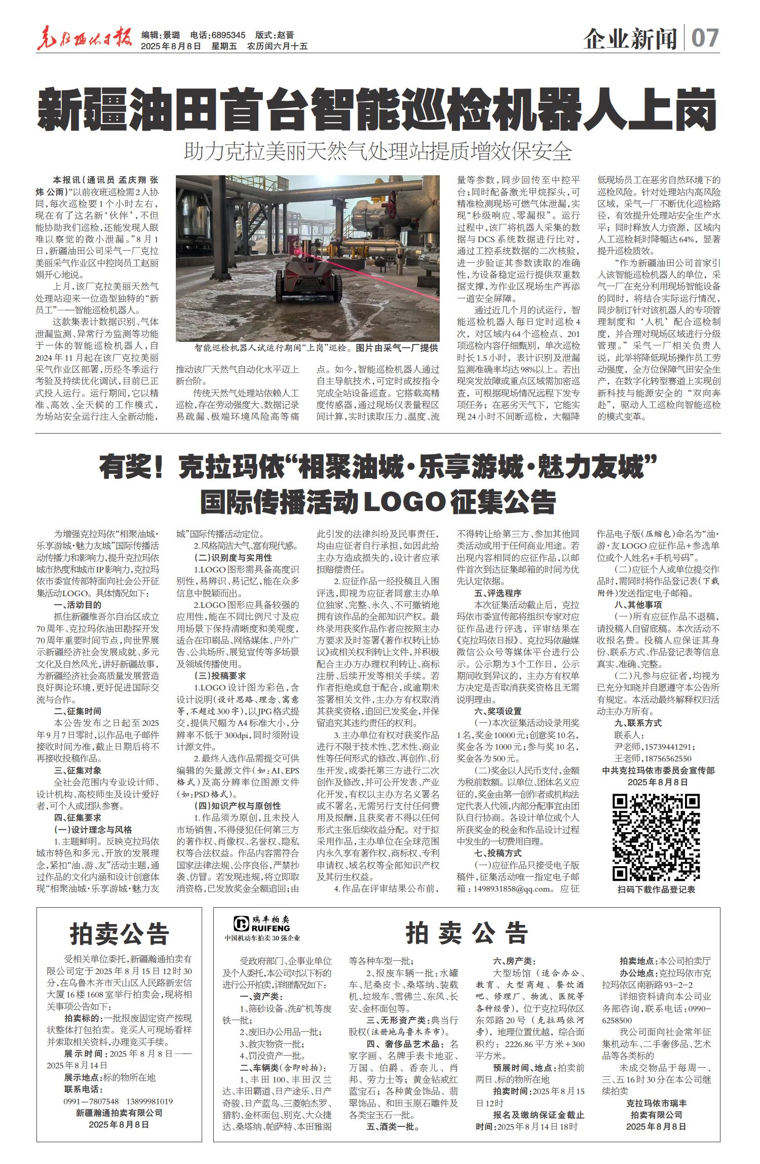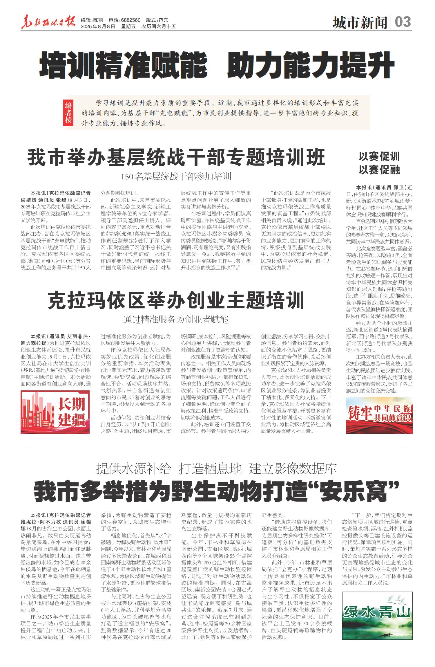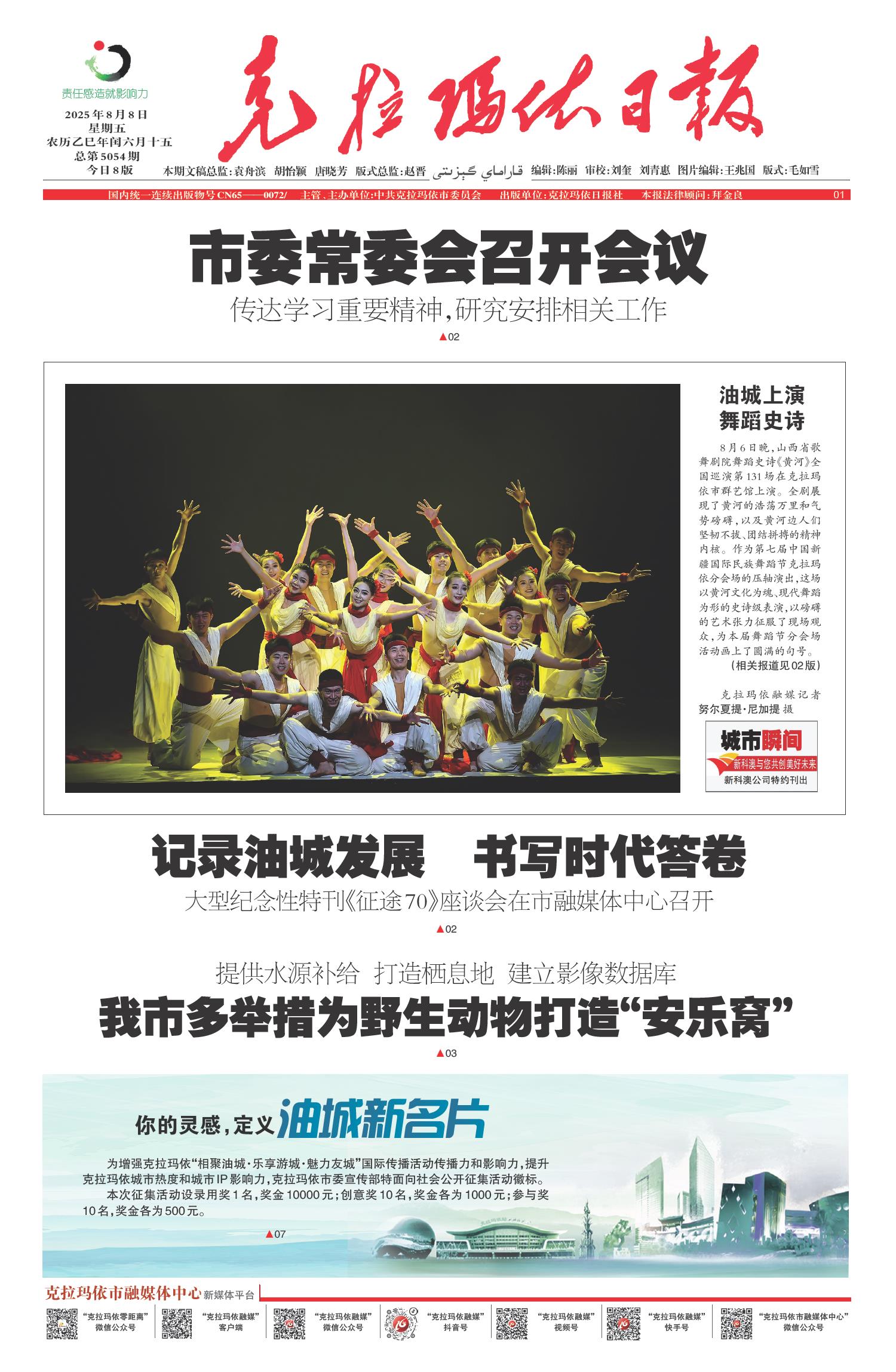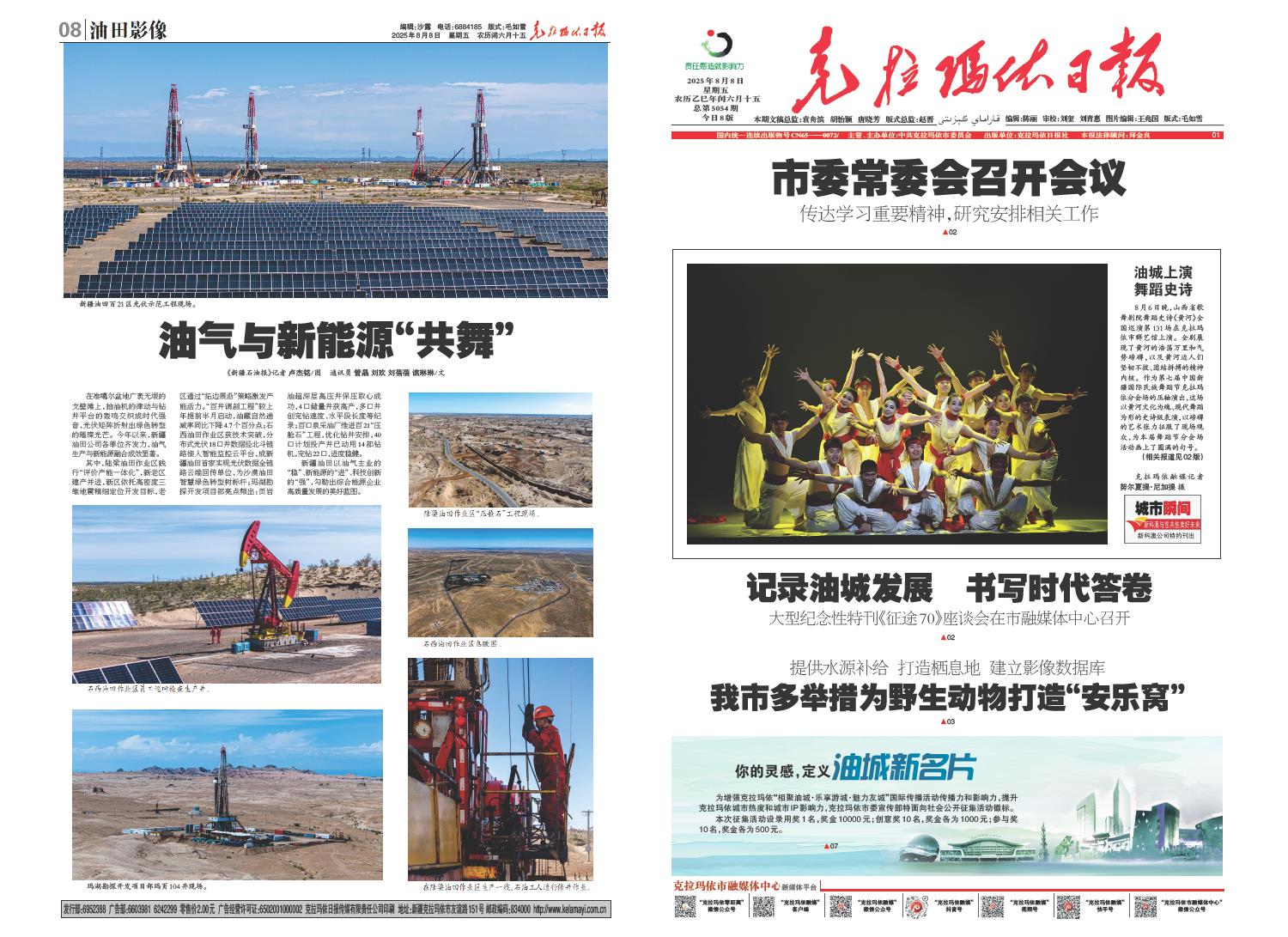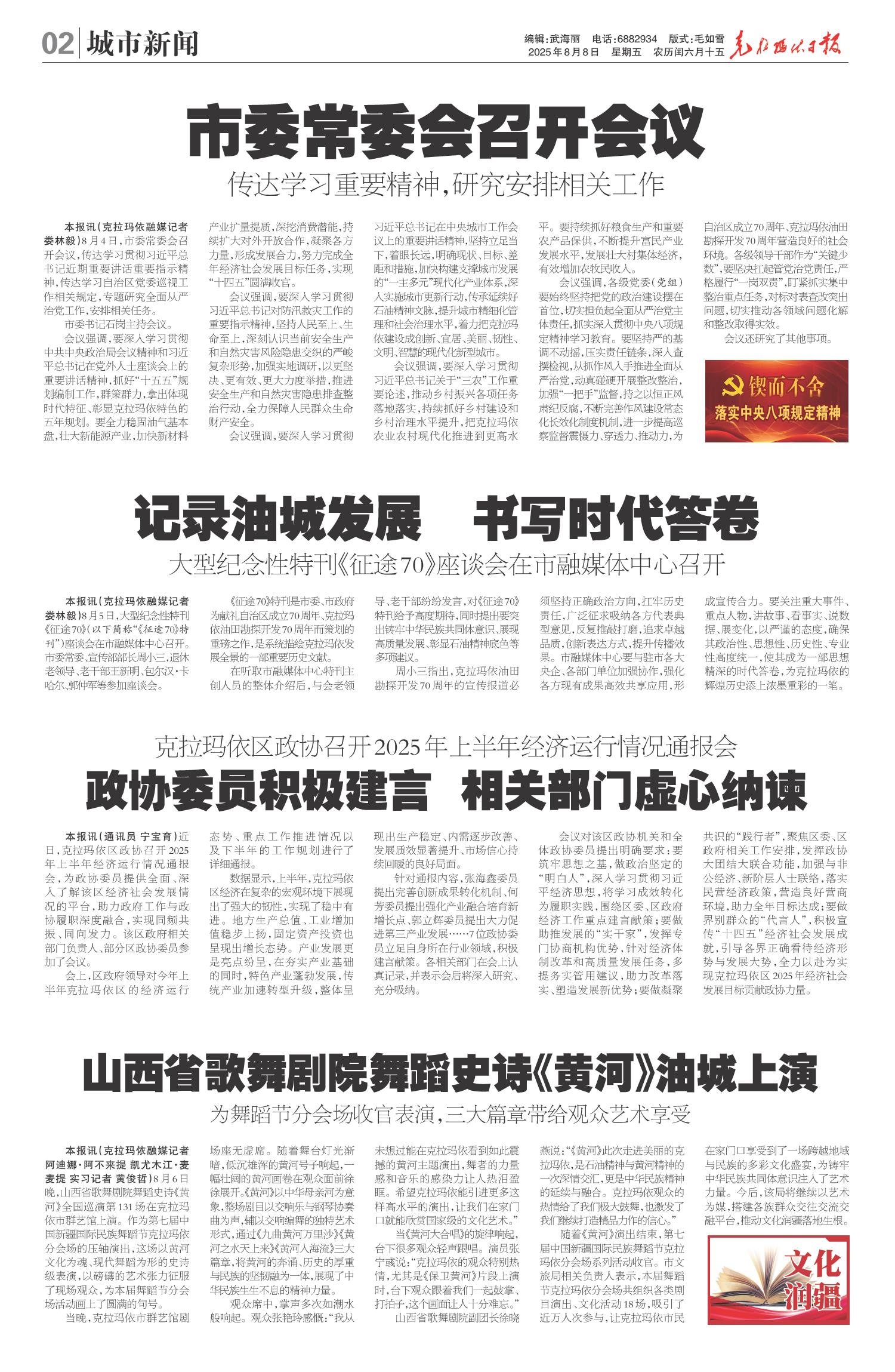 A01 本期导读 A02 城市新闻 A03 城市新闻 A04 特别报道 A06 寻访他乡克拉玛依人 A07 企业新闻 A08 油田影像