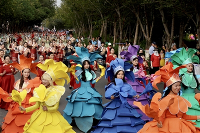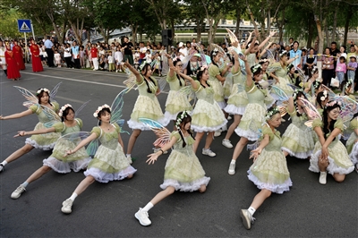 装扮成花精灵的姑娘们跳起青春洋溢的舞蹈。