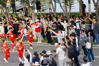众多摄影师与短视频创作者将镜头对准非遗表演。