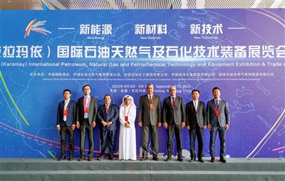杜勇(右一)参加第六届中国(克拉玛依) 国际石油装备展时留影。