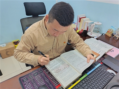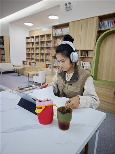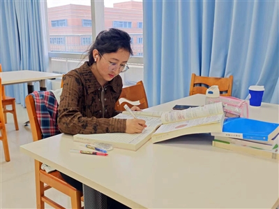 职工在工作之余学习充电。