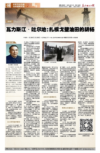 1951年,中苏石油股份公司中方成立了党委,瓦力斯江・吐尔地当选为党委委员,参与到新疆油田火热的初创工作之中。