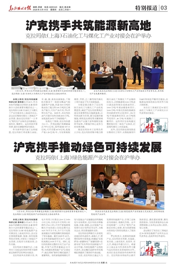 本报上海讯(克拉玛依融媒特派记者 娄林毅)3月18日,作为2026年新疆克拉玛依(上海)投资推介大会的重要专题活动之一,克拉玛依(上海)绿色能源产业对接会在上海成功举办,会议旨在围绕新能源、氢能、绿色航煤等前沿领域,对接长三角地区产业资源,实现双方深度协同、合作共赢。