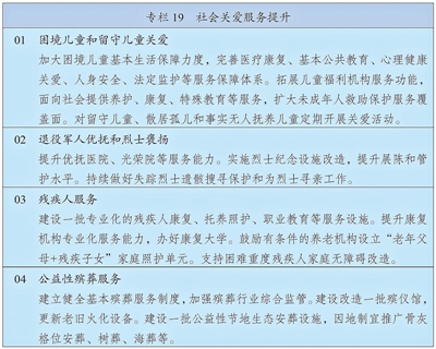 完善残疾人社会保障制度和关爱服务体系,促进残疾人事业全面发展。强化对重度残疾、多重残疾、一户多残等群体兜底保障,健全困难残疾人生活补贴、重度残疾人护理补贴制度及补贴标准动态调整机制,加强残疾儿童康复救助,健全残疾人辅助器具适配补贴制度。完善残疾人社区和家庭支持,加强重度残疾人托养照护,发展精神障碍社区康复。强化残疾人就业帮扶,完善按比例就业、集中就业、自主就业促进机制。发展残疾人文化体育。深入推进科技助残,加强公共设施、信息交流、社会服务无障碍环境建设。