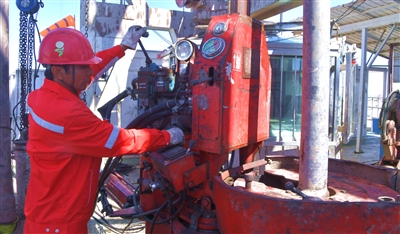 6月22日,准东钻井公司员工冒着高温开展下钻施工作业。