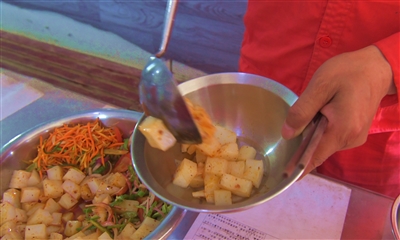 ▶6月22日,准东钻井公司为员工准备了凉粉等爽口午餐。