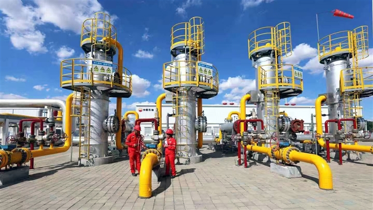 6月19日,在新疆油田公司呼图壁储气库生产现场,一线员工顶着烈日对设备进行逐一检查。薛梅 摄