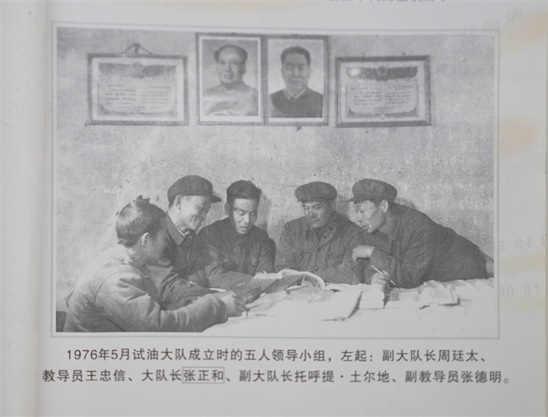 王忠信留存着试油大队成立时的5人领导小组照片。