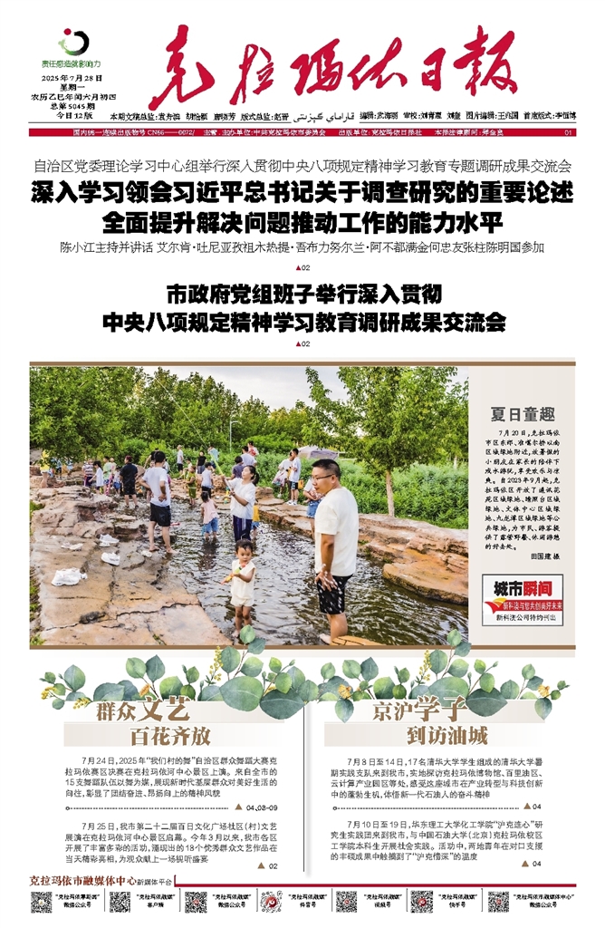 - 京沪学子 到访油城 7月8日至14日,17名清华大学学生组成的清华大学暑期实践支队来到我市,实地探访克拉玛依博物馆、百里油区、云计算产业园区等处,感受这座城市在产业转型与科技创新中的蓬勃生机,体悟新一代石油人的奋斗精