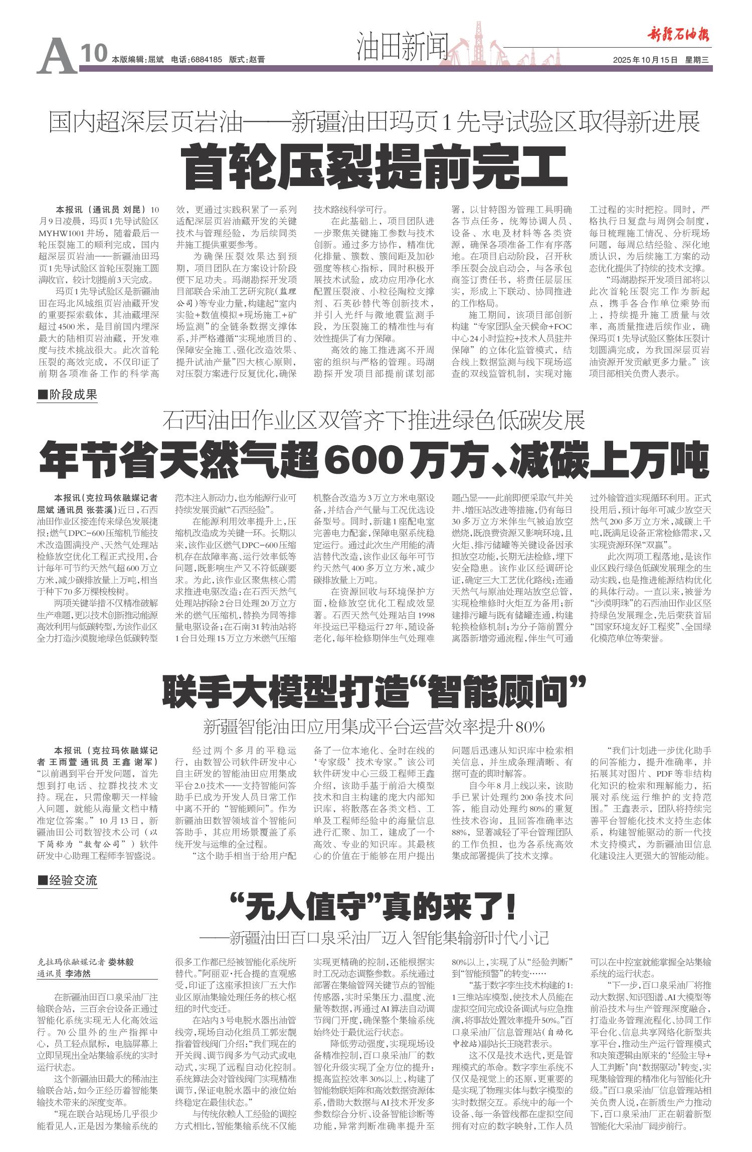 A10 油田新闻